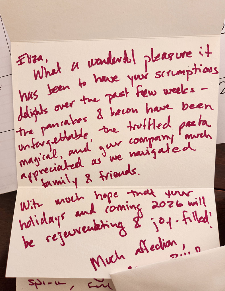 Elisabethe, you are SO talented a chef. We feel fortunate to have found you.